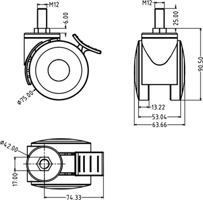系列:12系列全塑雙片剎車腳輪