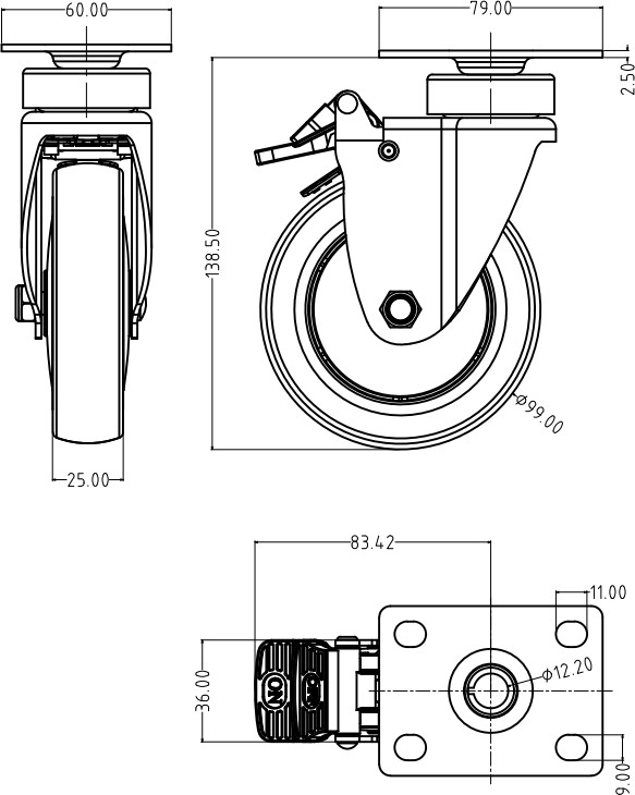 48系列均采用鋼架主體結構,具有更強的承載能力,萬向轉動及輪軸均采用精密靜音滾珠軸承, 轉動靈活靜音效果佳;雙聯動剎車結構,制剎效果好;輪片有輪蓋設計,防塵、防纏繞,保護輪子轉動。